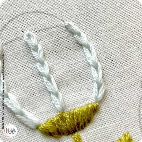 As a basic embroidery stitch, the chain stitch is incredibly versatile. It forms a series of loops connected together, which creates a strong, textured effect that’s perfect for outlining shapes or filling in spaces. It resembles the texture of crochet stitches, and when used as a fill, it adds an elegant and dimensional look.