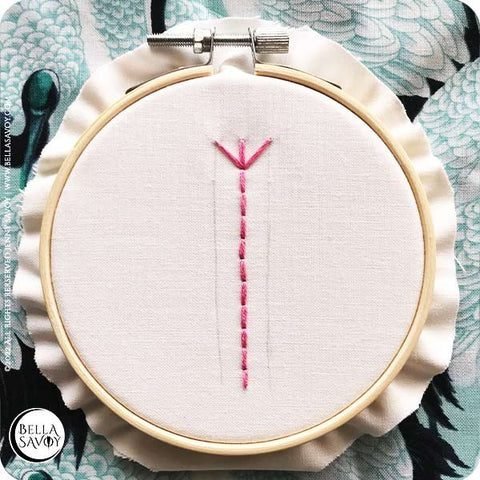 As the name suggests, the fern stitch resembles a fern leaf and looks much like the long tail fly stitch stacked on top of each other. It’s perfect for creating plants, hanging vines, borders, or even the fletching of an arrow. You can also use it for open fills or any design element that needs a bit of texture and depth. This is a great stitch to add to your repertoire, especially if you’re looking for something easy yet impactful. Whether you’re working on a cozy hobby or new embroidery project, the fern stitch will bring a beautiful, organic touch to your work.