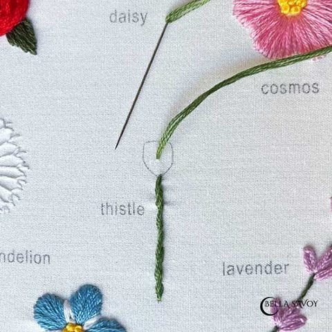 🖤 Welcome back to part 2 of the flower embroidery stitch along! In this next segment of the flower embroidery tutorial, you’ll learn how to embroider flowers like the dandelion, forget-me-not, and thistle. These flowers are a perfect addition to your growing embroidery skills, and if you missed part 1, be sure to check it out for the first four flowers we covered.